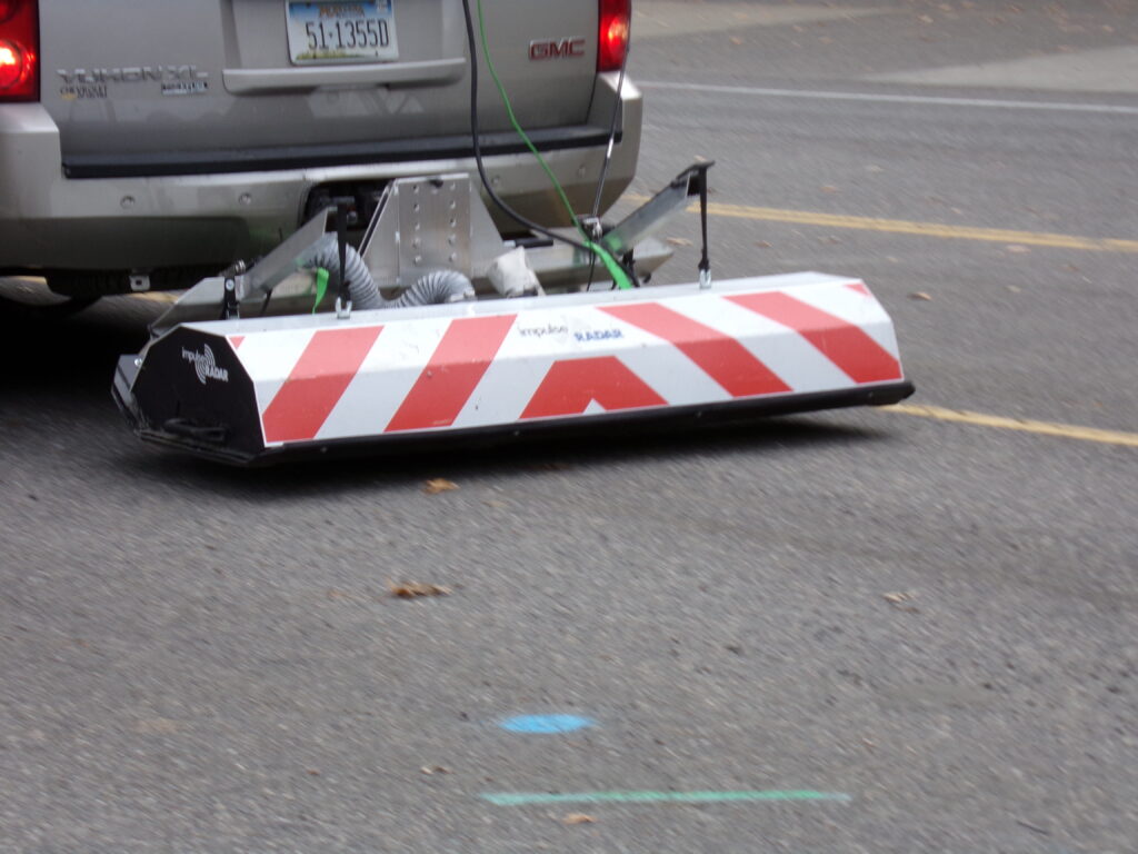 In other words, if the utility line is running north/south – then you push the GPR in an east/west path. Cross the project area, then move up, and cross again. You continue this procedure as many times as necessary. So, you are not tracing out the utility, but crossing the project area, and collecting points or “hits” on the utility. The information you are collecting is in pieces, but this provides the best method of making the utility visible.